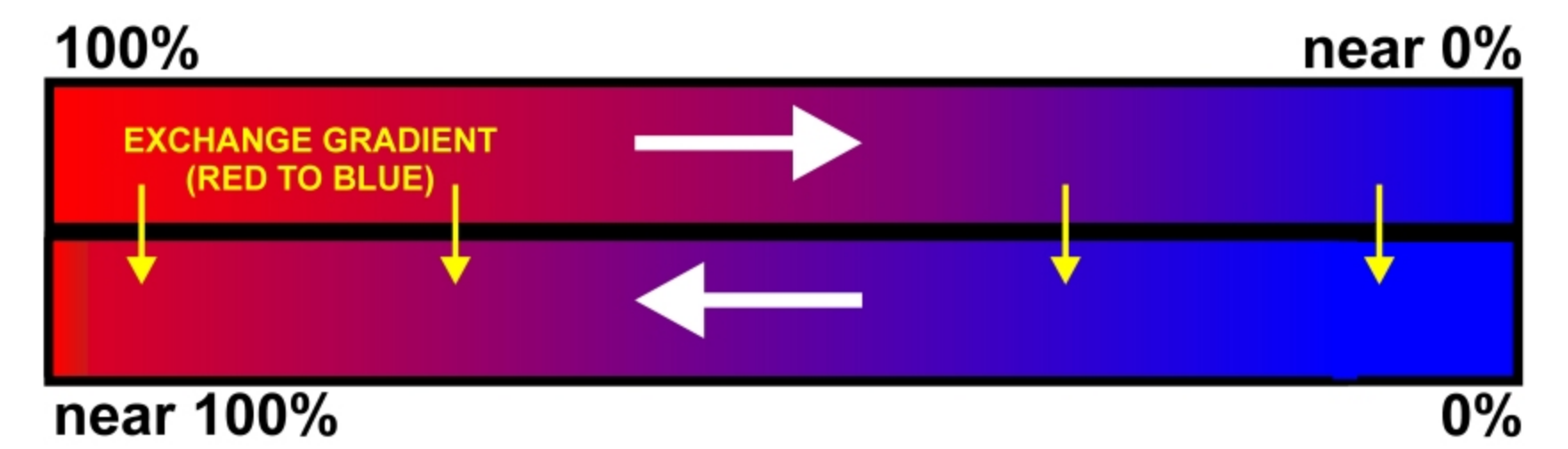 Abstract: → Conventionally large metal oxygen tanks weighing tens of kilograms are used as apparatus for breathing underwater which decreases the diving time and restricts us from exploring the deeper parts of the sea for a longer period of time. Considering this thesis, this particular research develops an underwater breathing system which is designed based on fish gills. This approach uses the principle of counterflow diffusion to extract dissolved oxygen from surrounding water and supply it directly to the deoxygenated blood coming from the body, eliminating the gas phase in between. A hypothetical system is developed based on the solution provided below. This paper specifically deals with the concept and the mathematical formulations of the phenomena that would be used in the development of this device. Introduction → The current methods for breathing underwater uses old conventional designs which greatly reduce our productivity. Existing conventional methods of breathing underwater can be divided into two types: Oxygen tanks and surface supplied method. These methods have some limitations like less diving time and large weight. Development of new methods of underwater breathing is therefore required. The Oxygen present in atmosphere gets dissolved in water because of the its partial pressure [1] which can be used for breathing underwater. To extract this oxygen, diffusion process is used. Diffusion is mass transfer phenomenon which induces the flow of mass due to concentration difference. The proposed system uses this very principle for exchange of gases between blood and water. The contents of our research are distributed in the paper as follows: Section I describes introduction, Section II describes the core concept, Section III deals with the mathematical model, Section IV explains the design aspects of the device, Section V describes our hypothetical setup, Section VI sheds light on our future plans for the device. Core Concept → Our system closely mimics the natural structure of fish gills. fish uses the phenomena of counterflow diffusion to absorb oxygen from surrounding water; water flows over the gills and passes through the structure called primary lamellae [2], which consists of sub-structures called secondary lamellae, this is where the diffusion happens. The concentration of oxygen and carbon dioxide [3][4] dissolved in water depends upon the partial pressure gradient of gases between water and atmosphere. Now as the blood and water move in counter current direction in the gills; blood in lamellae and water over it, a partial pressure gradient exist between the deoxygenated blood and oxygen rich water. This results in the diffusion of oxygen into the blood from water. Carbon dioxide on the other hand diffuses from blood into the water because of its high concentration in blood as compared to water [5]. This is how a fish gill works. The countercurrent flow of blood and water has a reason. Suppose if the blood in the gills and water around it moved in the same direction in the fish gills, that is if they flowed parallel to each other, then the gas exchange occurs until their concentration became equal, since after that no partial pressure gradient exists, no diffusion occurs.